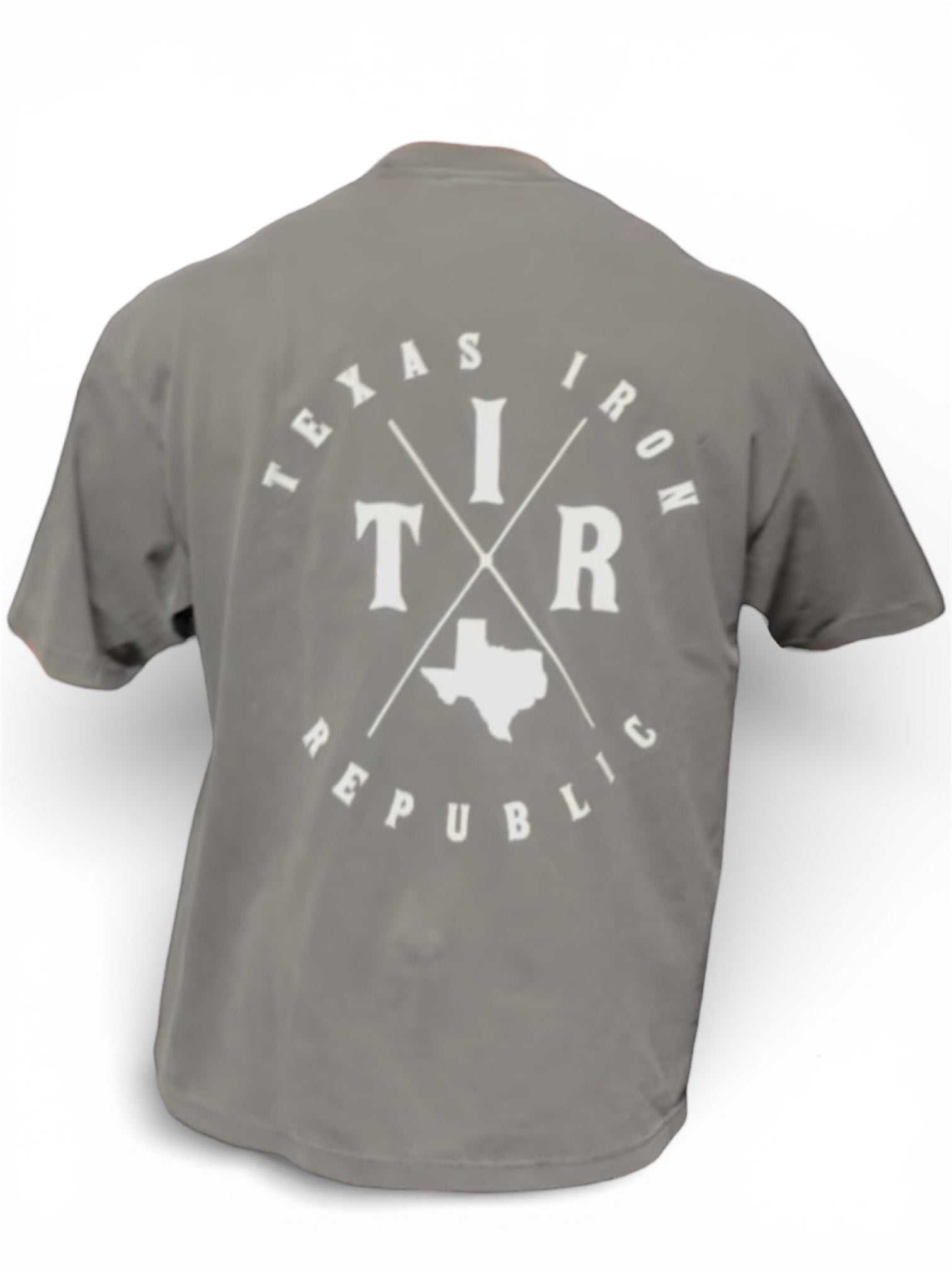 Heavyweight, garment- died, shrink resistant tee in dark grey wash featuring the Texas Iron Republic Cross Emblem. Built Texas- Tough with a structured, slightly oversized fit that holds its shape and breaks in over time. Made for long Training days, hot garage sessions, and everyday wear.